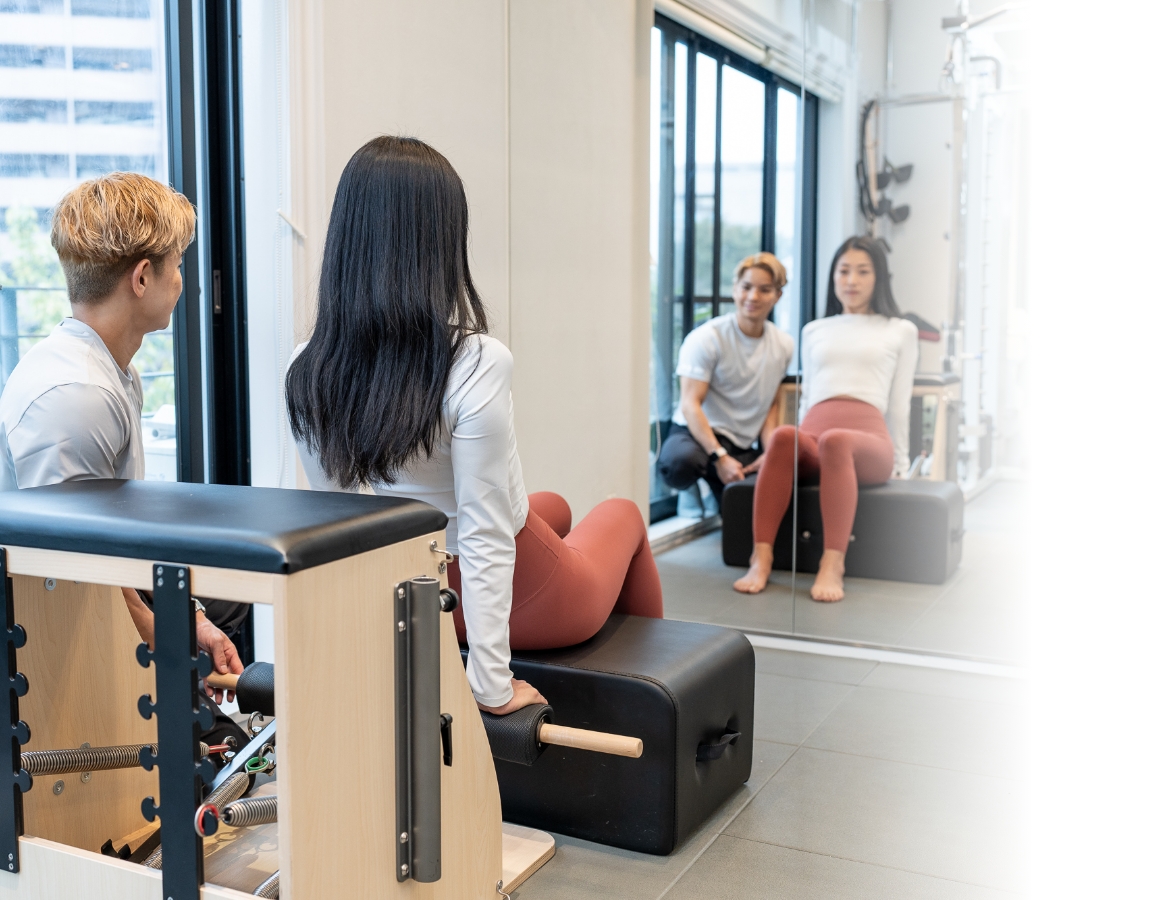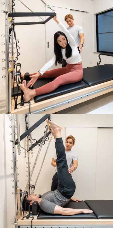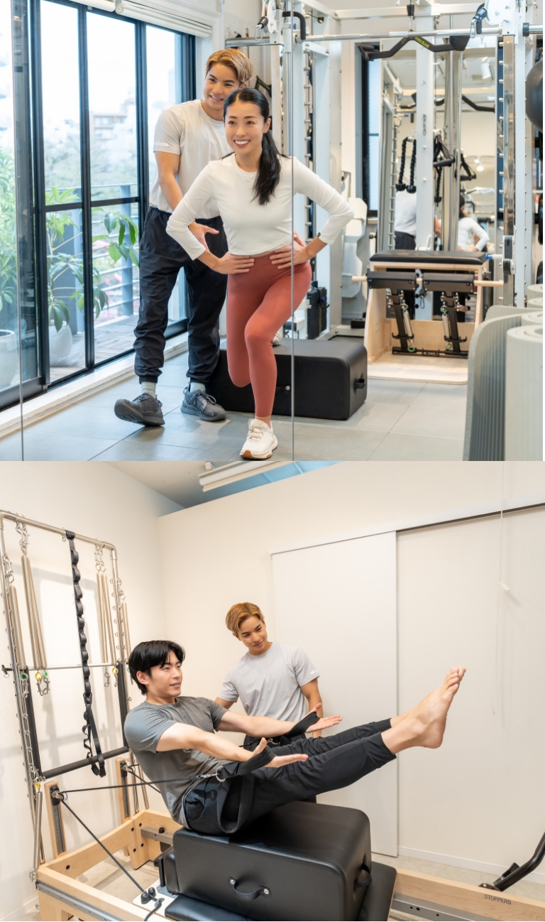 完全個室パーソナルジムとしては珍しい、ウエイトトレーニングだけでなく、マシンピラティスも完備。 リフォーマー、タワー、チェアと3種類が揃っており、様々なアプローチでピラティスを体験できます。 現状の体やその日の調子によって、「ウエイトトレーニング」と「ピラティス」を組み合わせて最良のプログラムを提供します。